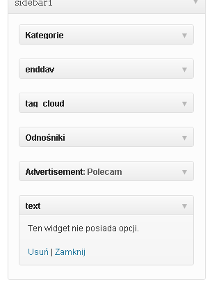 Po wybraniu tego widgetu i dodaniu go do pierwszego sidebaru wyglądało to następująco: