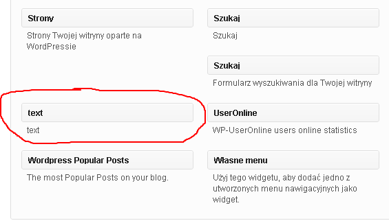 Okazało się, że zastosowany szablon był już dość stary i próbował sam generować niektóre widgety – między innymi tekstowy, który nie działał!