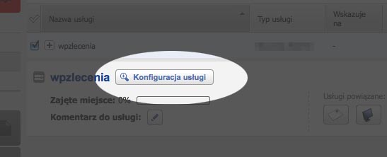 5. Po rozwinięciu się, klikamy KONFIGURACJA USŁUGI: