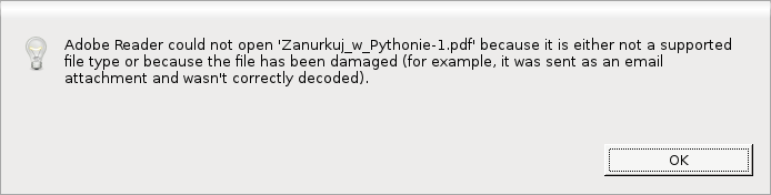 Plik jest już zakodowany! Będzie go można zobaczyć w katalogu /wp-content/uploads, ale bezpośrednie otworzenie spowoduje wyświetlenie albo śmieci, albo komunikatu o błędzie. Oto próba otworzenia tak zakodowanego pliku PDF: